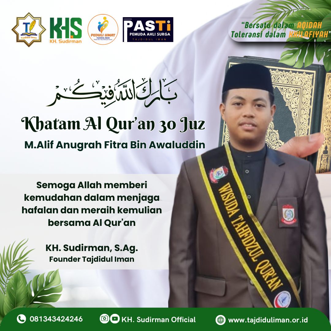 Bertekad ingin memberi Mahkota bagi kedua orang tuanya, serta membahagiakannya kelak di dunia dan di akhirat, M. Alif Anugrah Fitra bin Awaluddin, berhasil menghafal 30 Juz Al Quran.